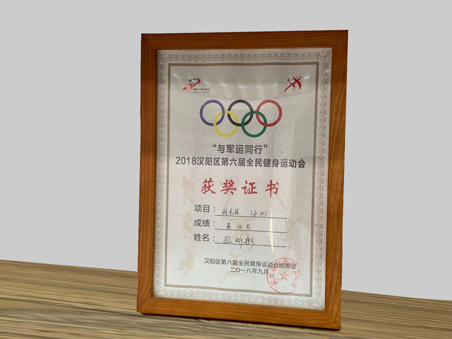 “與軍運(yùn)同行”2018漢陽區(qū)第六屆全民健身運(yùn)動會獲獎證書...