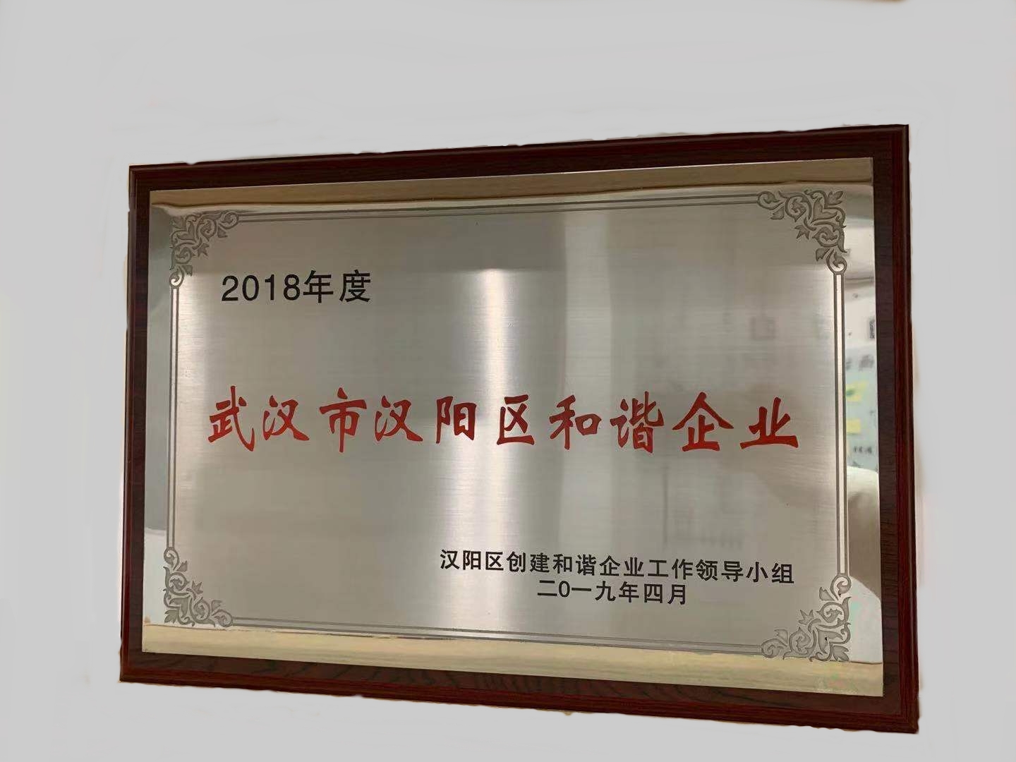 2018年度武漢市漢陽區(qū)和諧企業(yè)